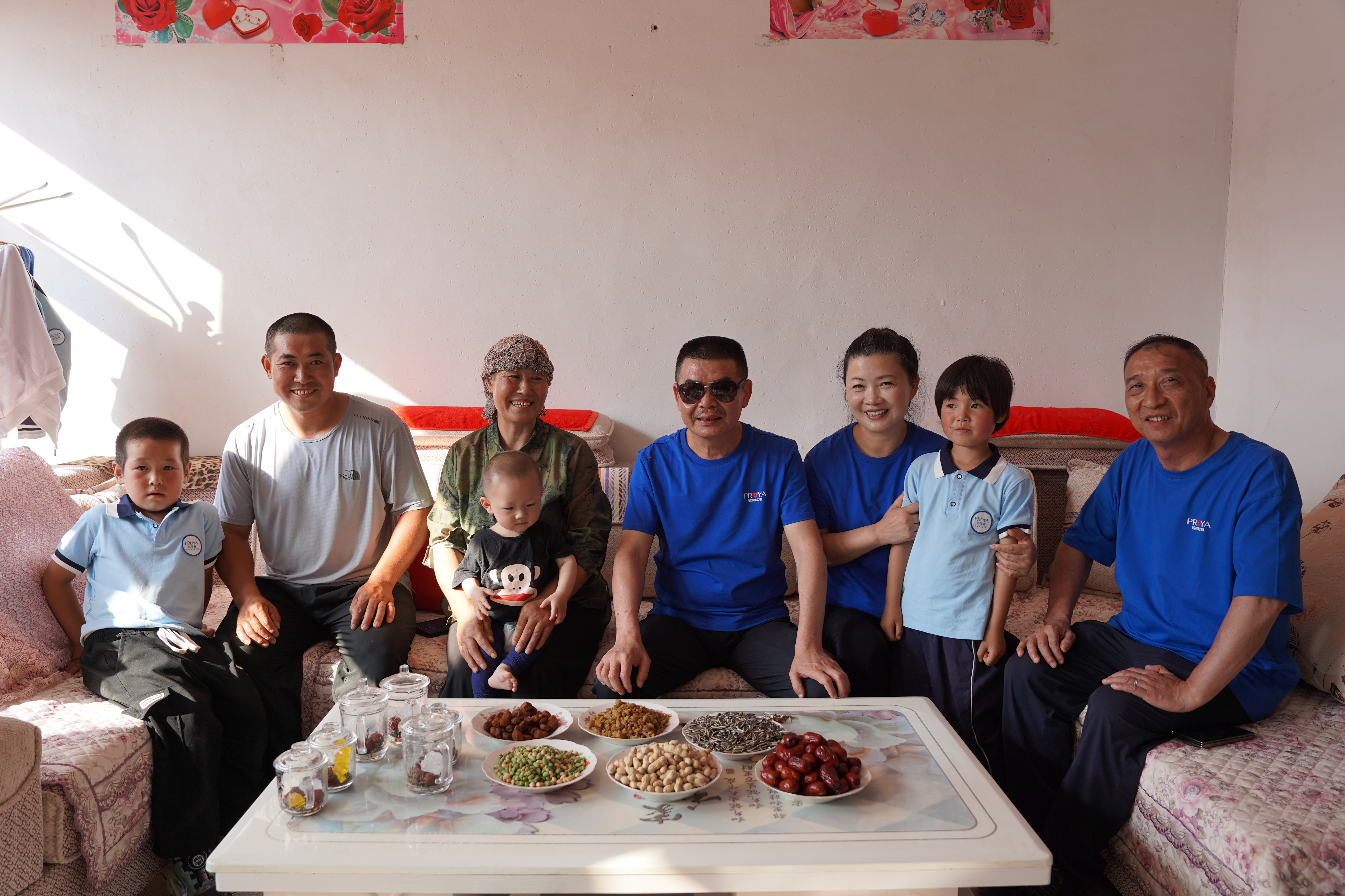 太阳逐渐西落,珀莱雅公益团队带着慰问物资依次走访了老秦、老马、老赵三家。在18年前就已结缘的老秦家中,董事长问候了老秦的儿子,已经出嫁的女儿秦玲通过视频与董事长对话,问候起近况,秦玲仍难掩激动;走进老马家,看到四个孙子孙女都穿着希望小学的校服,老马的爱人还是学校的厨师,守护着全校学生的安全饮食。学校老师介绍道,平时学校硬件有修理需要都是老马二话不说“出马”解决,提供了非常大的帮助;离学校最远的老赵家也有两个孙子在学校读书,因父母特殊情况,孩子语言环境受限,老赵把孩子送到学校后才逐渐改善了孩子的语言能力。