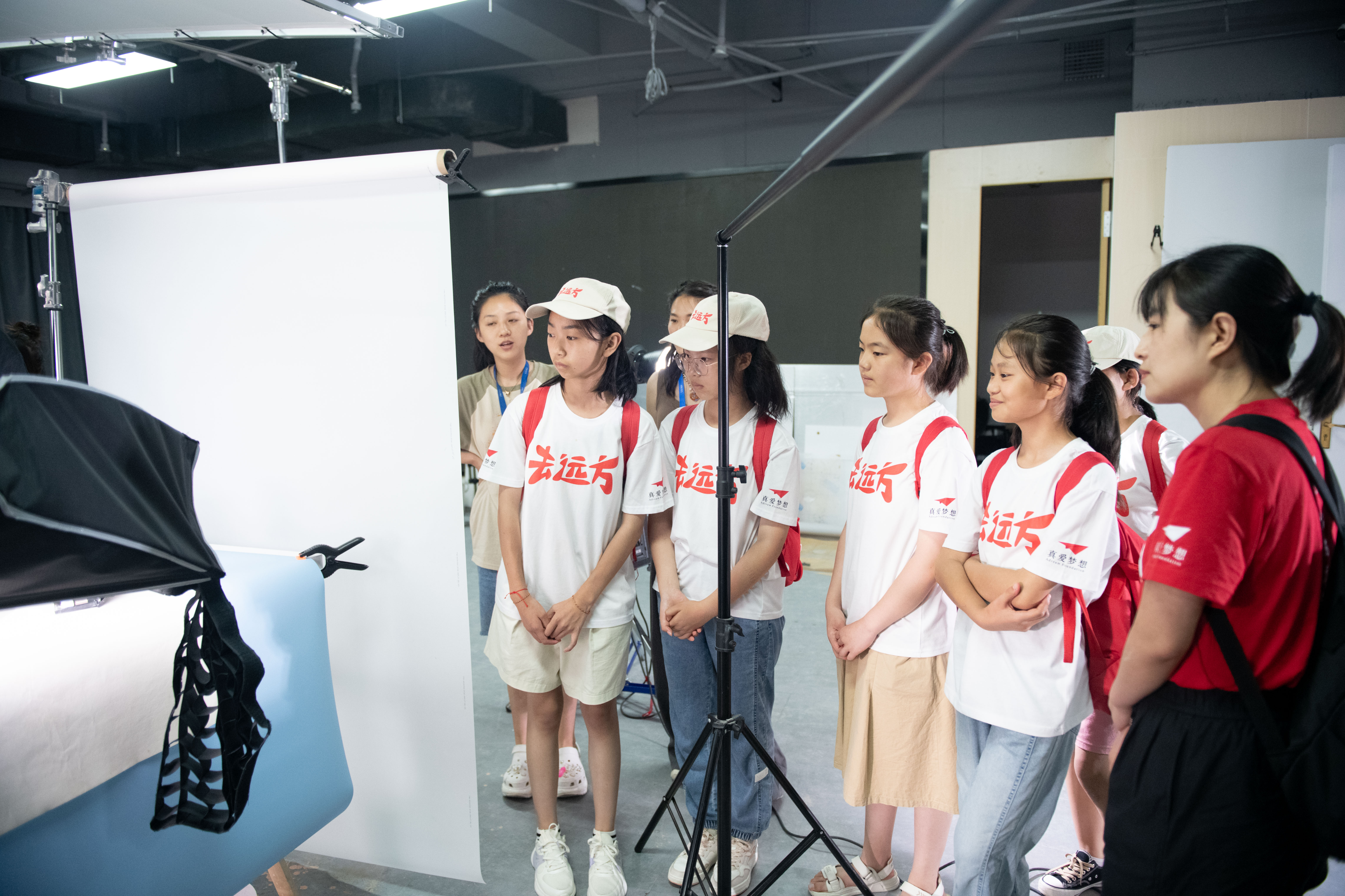 带着做好的口红,孩子们满心欢喜地来到摄影棚和剪辑室,观摩编导、摄影、制片、后期剪辑等不同工种的现场操作。“原来我们刷到的视频,都是这样做出来的。”