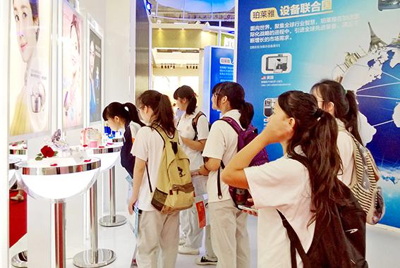 参观者在珀莱雅产品前驻足。