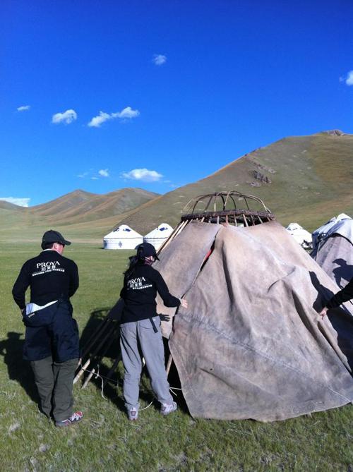 勇士们正在搭蒙古包