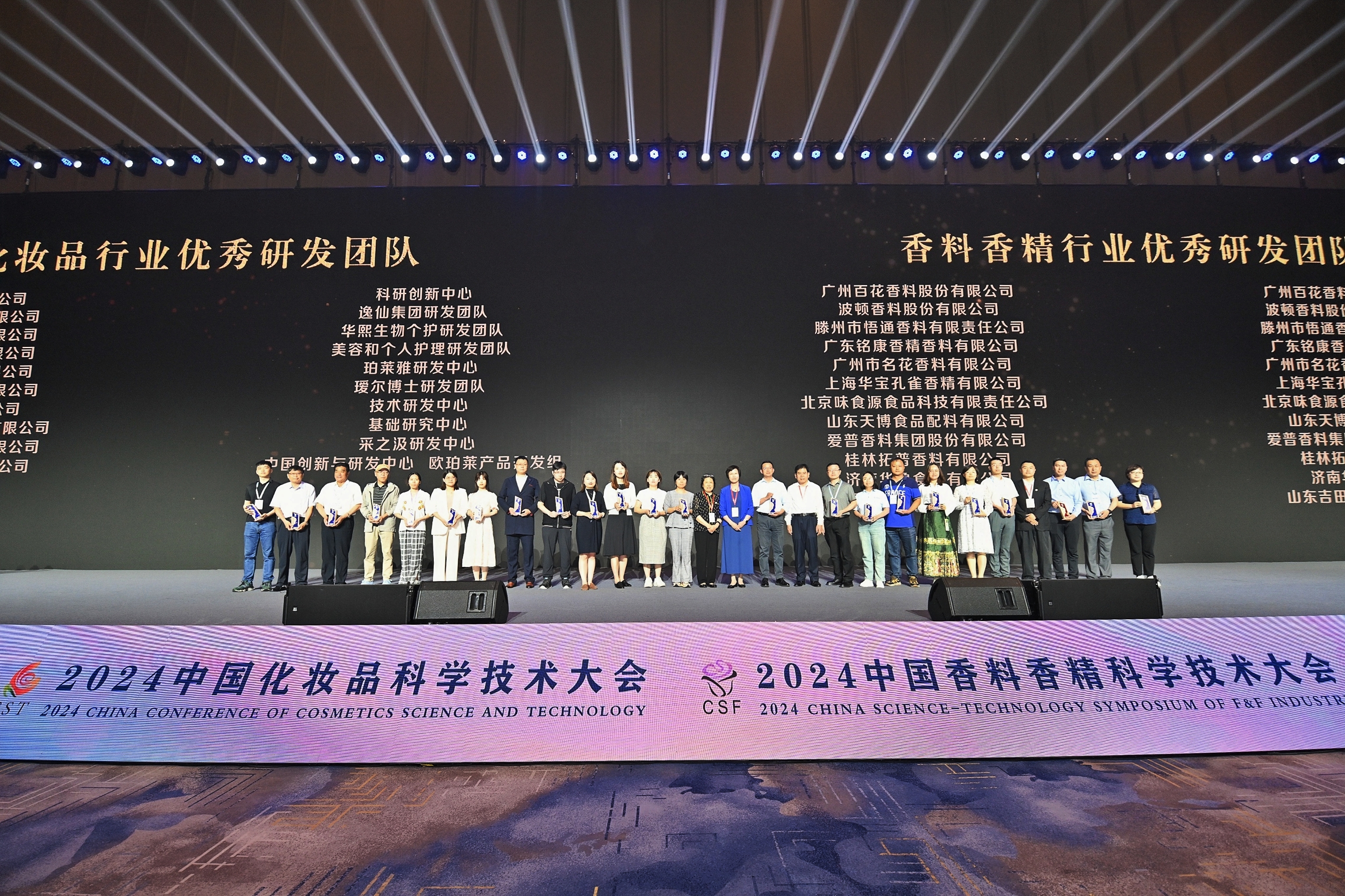 5月24日—5月26日,2024中国化妆品科学技术大会暨第十五届学术研讨会在江苏召开。会上,珀莱雅研发中心荣获由中国香料香精化妆品工业协会颁发的“优秀研发团队”,研发工程师个人获得“化妆品行业优秀工程师”、“化妆品行业新锐工程师”称号。此次大会聚焦全球香料香精行业的最新发展动态,通过院士及科学家专题演讲、化妆品行业多元主题分论坛、化妆品配方师演练等一系列活动,展示行业新观念、新技术、新产品,致力于创新技术赋能中国美妆产业。