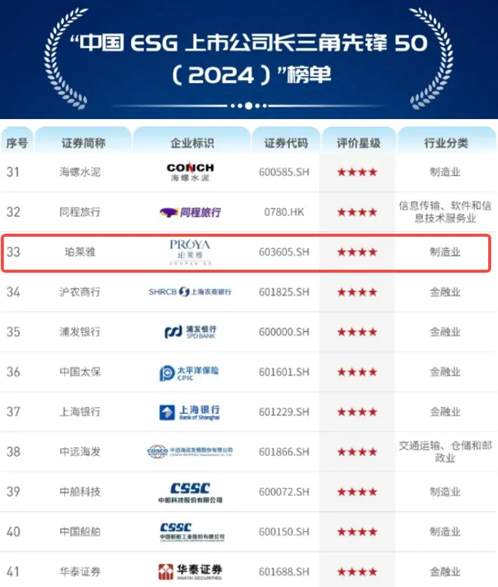 近期,中央广播电视总台正式对外发布《长三角ESG行动报告》,珀莱雅(603605.SH)凭借在ESG领域的优秀表现成功入选“中国ESG上市公司长三角先锋50(2024)”榜单。