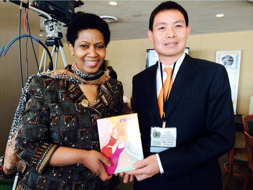 纽约时间3月6日 珀莱雅股份CEO方玉友与联合国副秘书长兼联合国妇女署负责人——南非首位女性副总统姆兰博-努卡(Phumzile Mlambo-Ngcuka)女士合影