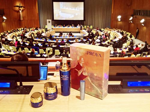纽约时间3月6日 珀莱雅股份旗下珀莱雅品牌明星产品亮相联合国总部