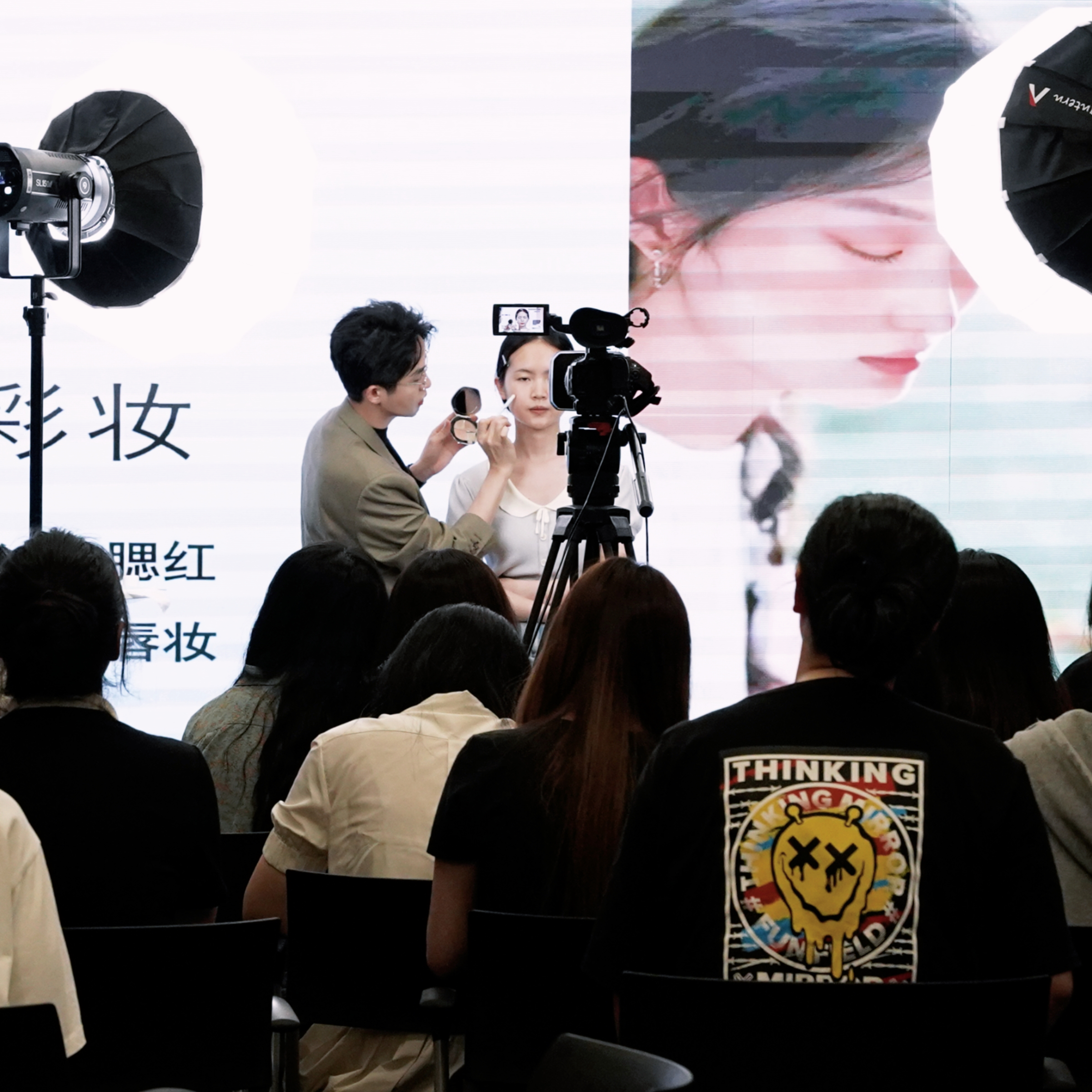 讲座邀请了彩棠品牌首席化妆师嘉城老师到场授课,在4K高清相机同步转播下,从面部的基础清洁、打底,到每一步骤的细节处理,演练过程中老师分享的爱用好物和化妆窍门,并针对不同的肌肤、脸型、五官大小给出了个性化的美妆建议。